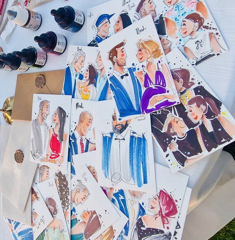 Durante l’evento gli ospiti vengono ritratti dal vivo in tecnica sketch, con formato A6 o A5 a scelta.